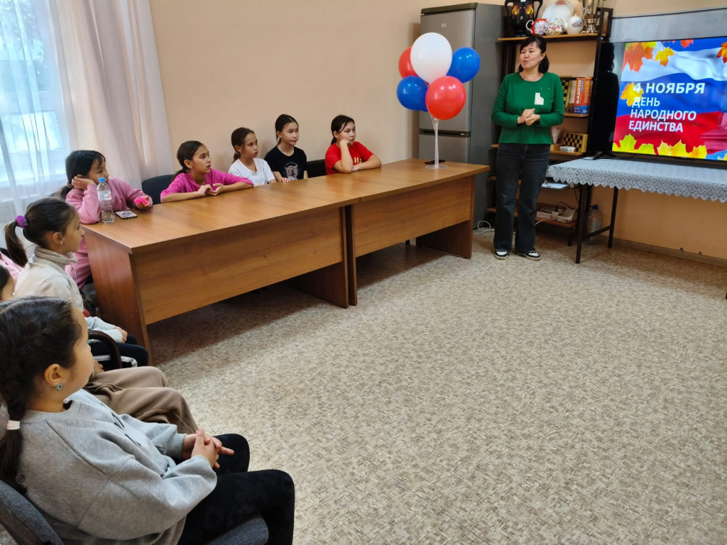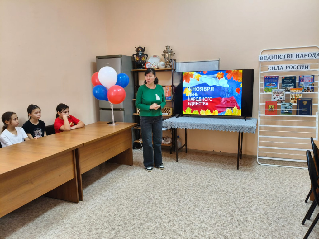 библиотекой Курманова Б.Б. провела час истории «В единстве наша сила»,