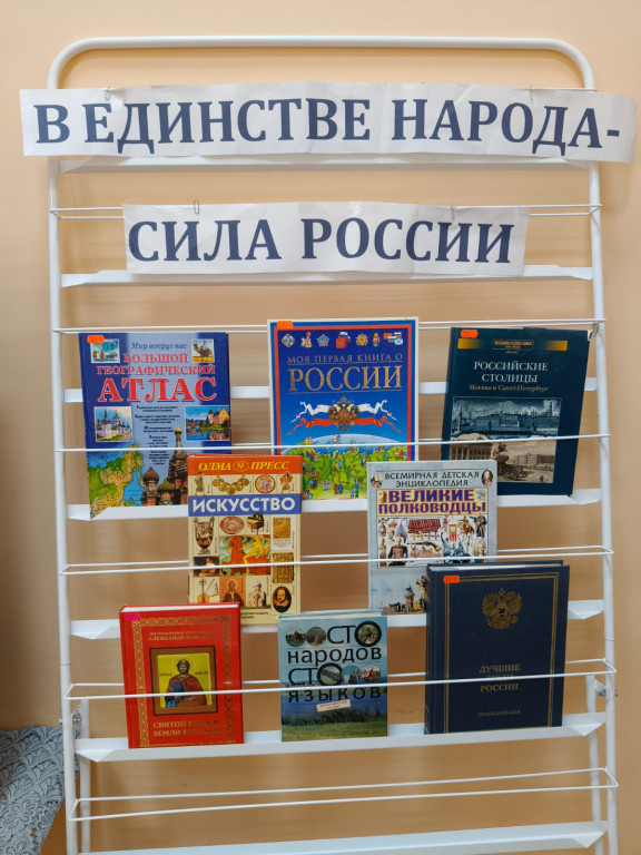 детей была представлена тематическая книжная выставка «В единстве народа - сила