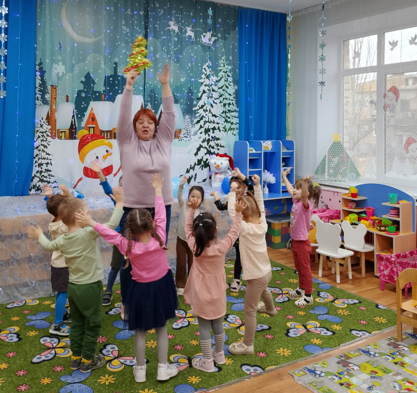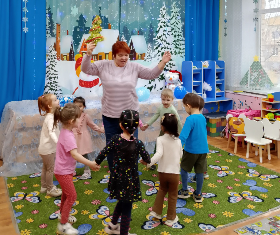 течение всего мероприятия звучали детские песни, посвящённые теме Нового года.