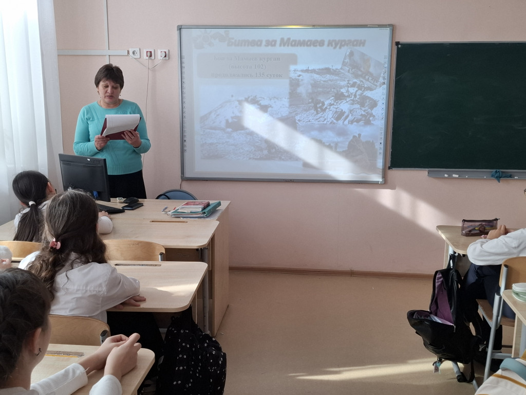 презентацией и просмотром видеороликов «Сталинградская битва» и «Мамаев