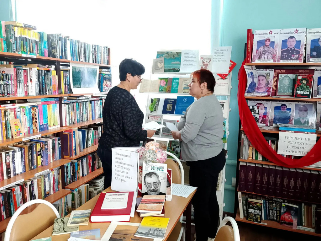 рассказала читателям об истории акции «Библионочь» и представила выставку