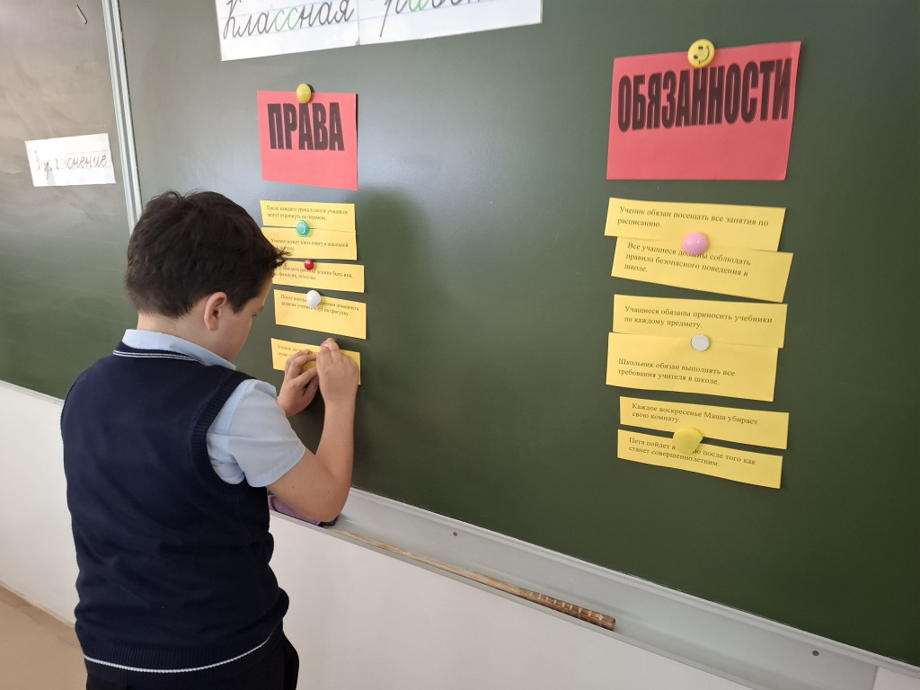 дети выполняли задания на тему прав и обязанностей школьников, а также играли в
