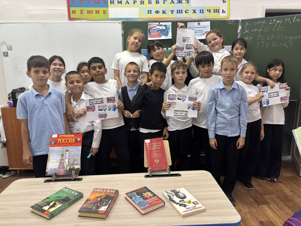 22-09-2025 13:42Патриотическое мероприятие «Вновь в единстве с Россией», проведённое 22 сентября заведующей Ассадулаевской сельской библиотекой для учеников 4-го класса Карагалинской СОШ, было посвящено важному историческому событию — Дню воссоединения ДНР, ЛНР, Херсонской и Запорожской областей с Россией. В ходе беседы дети узнали о референдуме, который проходил с 23 по 27 сентября в указанных регионах, когда жители выразили своё желание стать частью Российской Федерации. Это событие официально закреплено подписанными договоренностями от 30 сентября 2022 года.