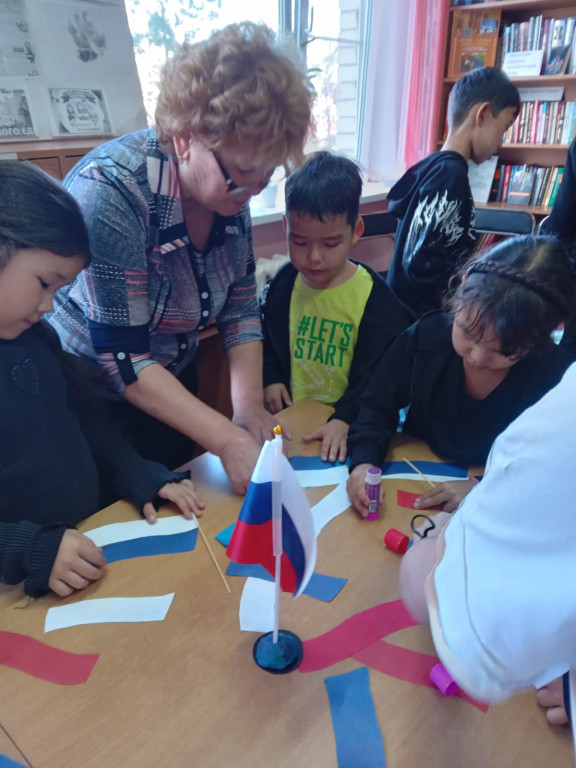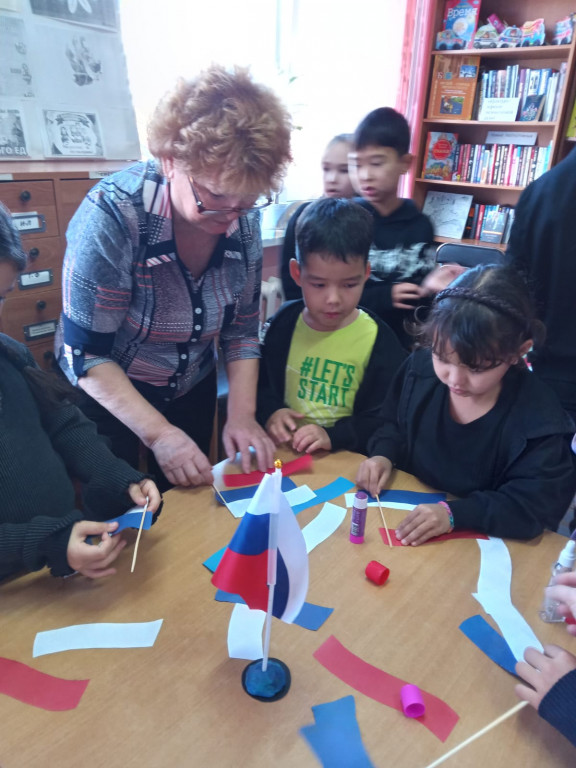 Ребята активно участвовали в викторине по историческим датам в истории нашей страны, разгадывали загадки, собирали пословицы. Мероприятие сопровождалось книжной выставкой, которая познакомила читателей с книгами об истории и культуре России, о великих русских богатырях – защитниках Руси. Библиотекарь провела мастер-класс по созданию одного из символов России – флага нашего государства.