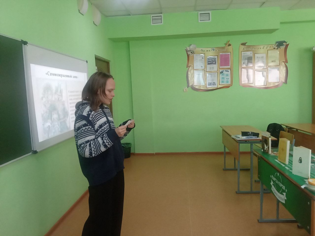 января заведующая Стеклозаводской сельской библиотекой провела для учащихся 7-В класса МКОУ «Татаробашмаковская